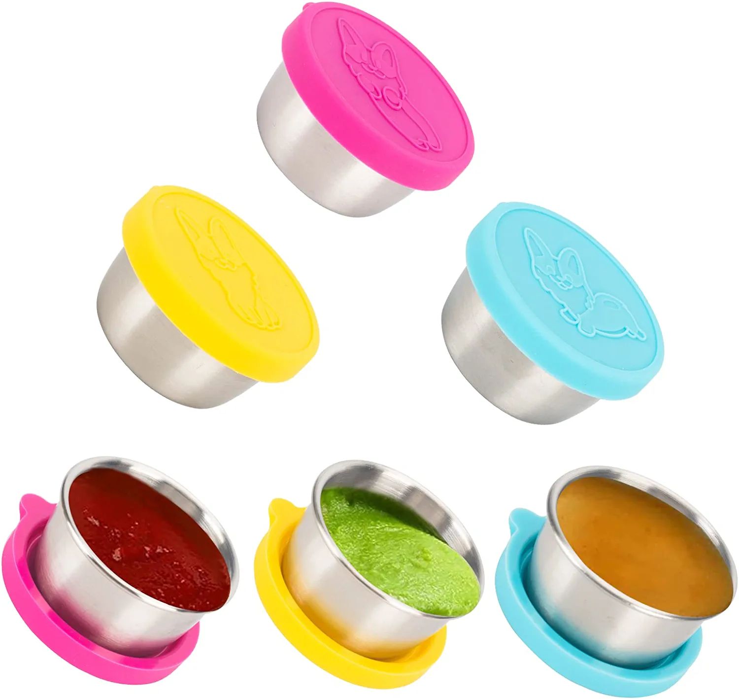 Home > Salad Dressing Containers To Go; 6x1.5 oz Stainless Steel Food Containers with Lids; Small Silicone Dipping Sauce Cups Toddler Snack Containers Lea