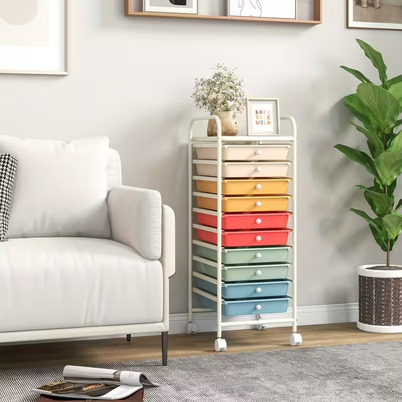 Home > 10 Drawer Rolling Storage Cart Organizer with Locking Wheels, Multi-Color Macaron Drawers, Metal Frame Mobile Utility Cart for Office, School, Home,