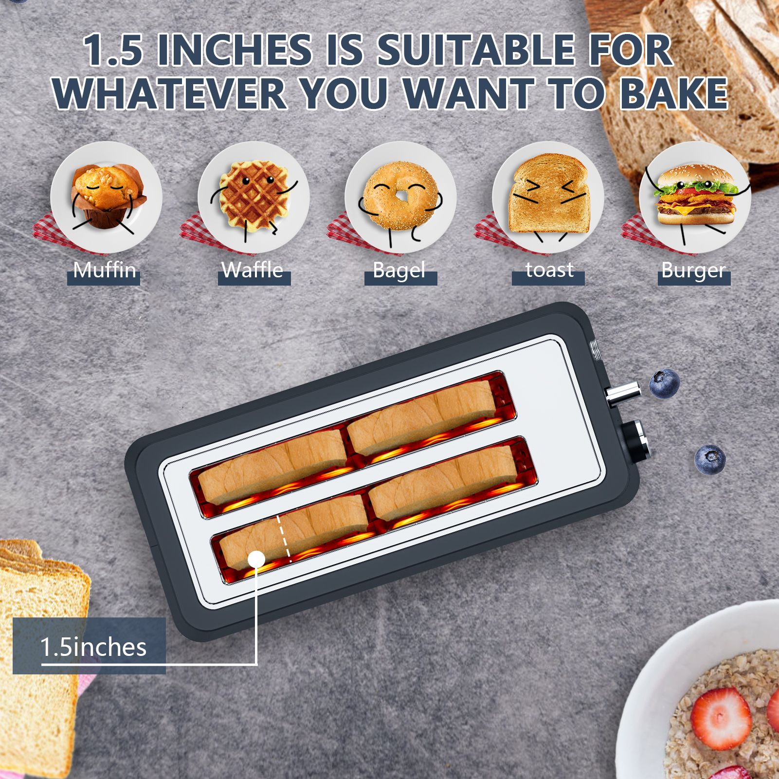 4-Slice Toaster, Extra Wide Long Slot Toaster, 6 Browning Settings, Bagel/Defrost/Reheat Functions, Removable Crumb Tray, Stainless Steel Housing, Ma