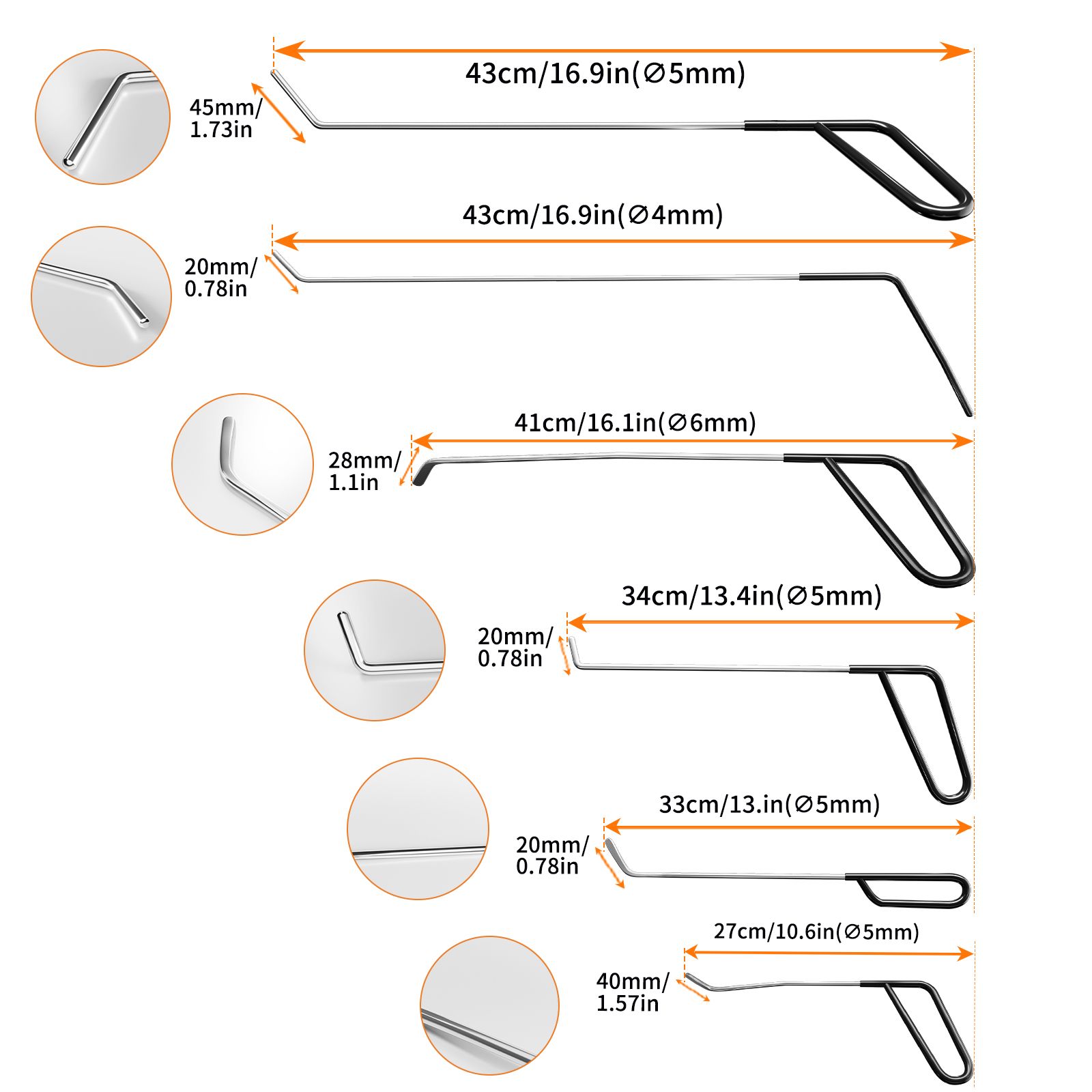 Durable Stainless Steel: The dent rod is crafted from hardened, thick spring steel material. Its significantly enhanced hardness resists bending or breaking.