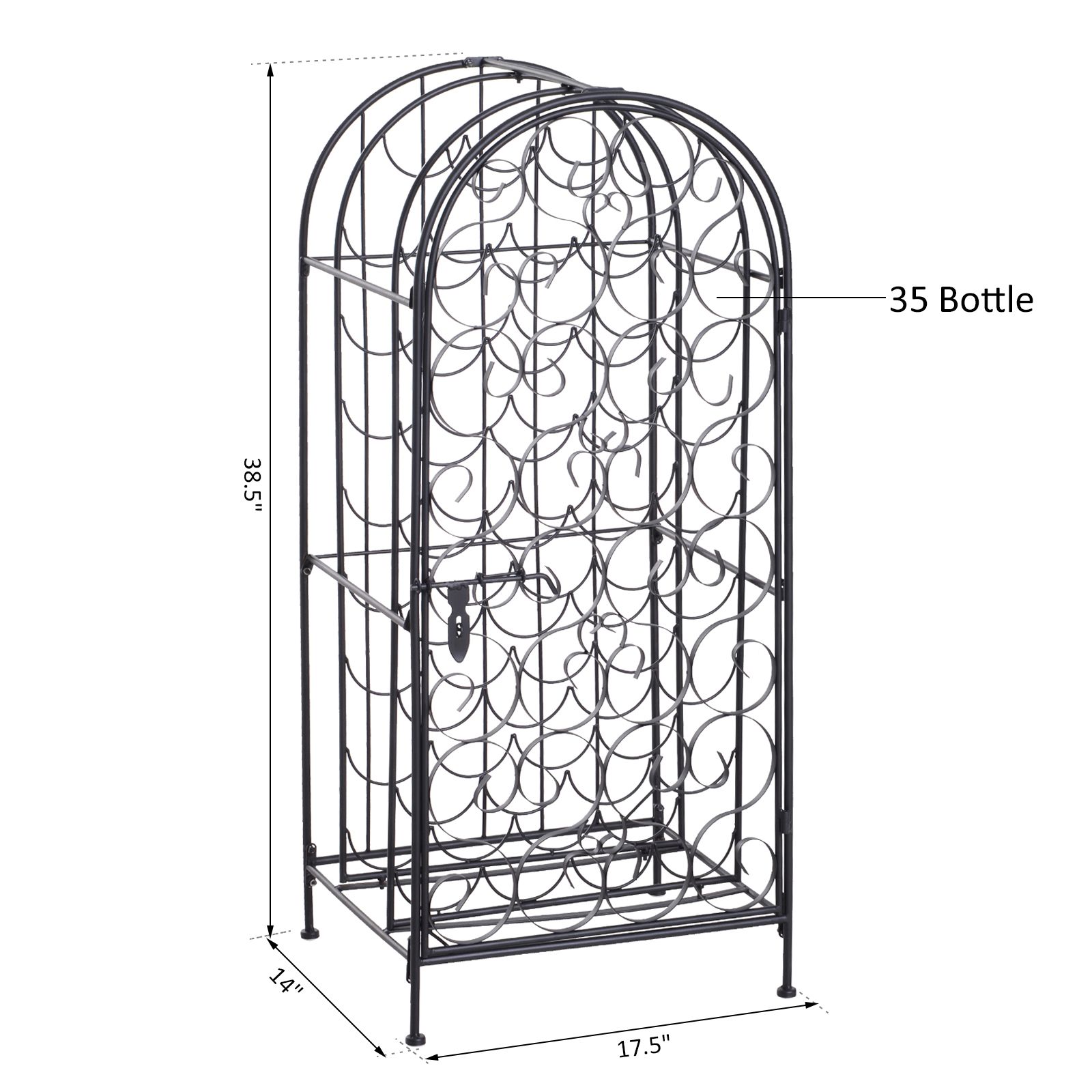 35 Bottle Wrought Iron Wine Rack Cabinet with Lock, Black 35 Bottle Wrought Iron Wine Rack Cabinet with Lock, Black 35 Bottle Wrought Iron Wine Rack Cabinet with Lock, Black