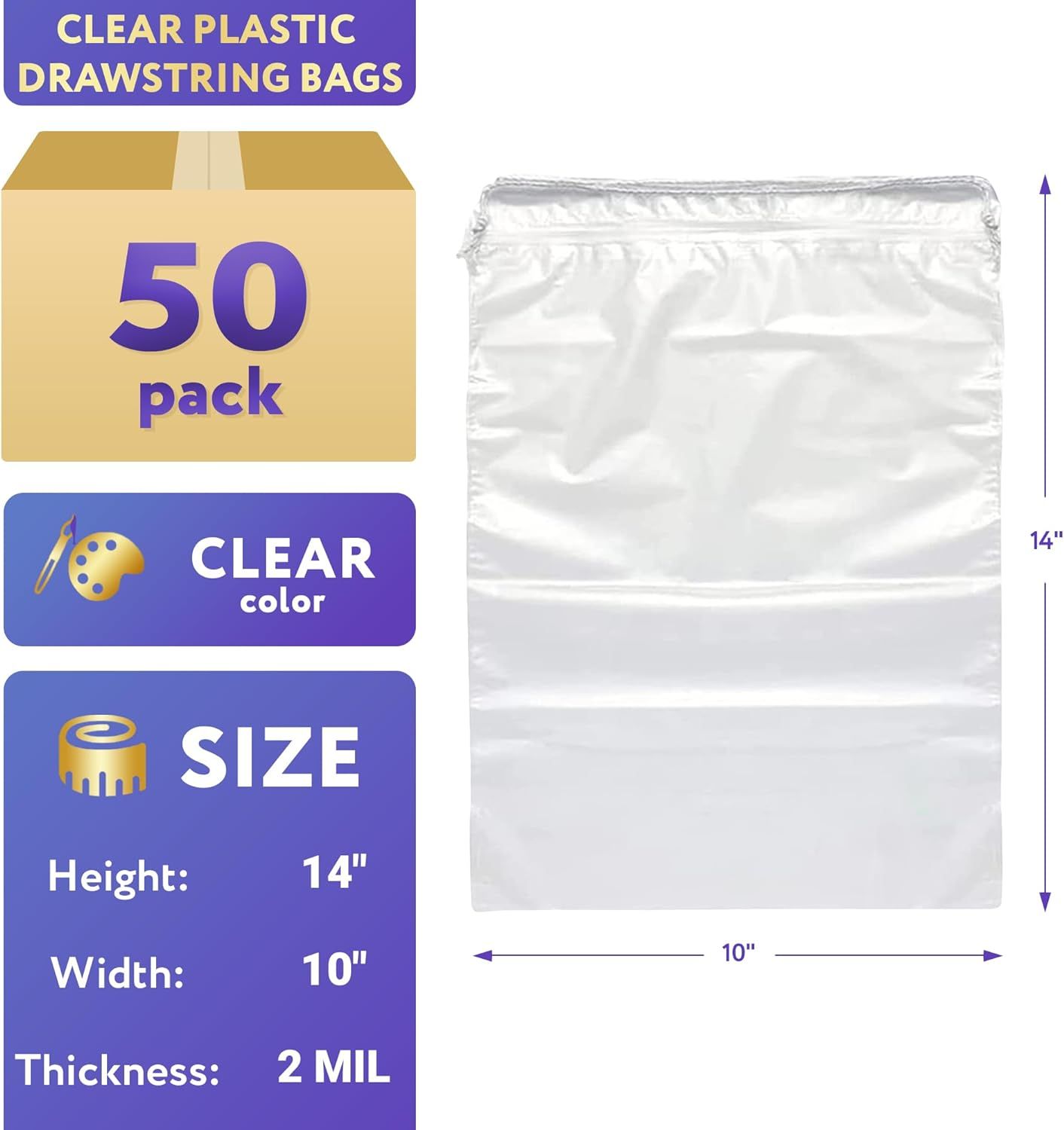Shoe Bags for Travel 10x14. Pack of 50 Travel Shoe Bags for Packing 10 x 14. Clear Drawstring Backpack 2 mil Thickness. Plastic Shoe Bags for Storage. Double Cotton Draw Strings Shoe Dust Bags.