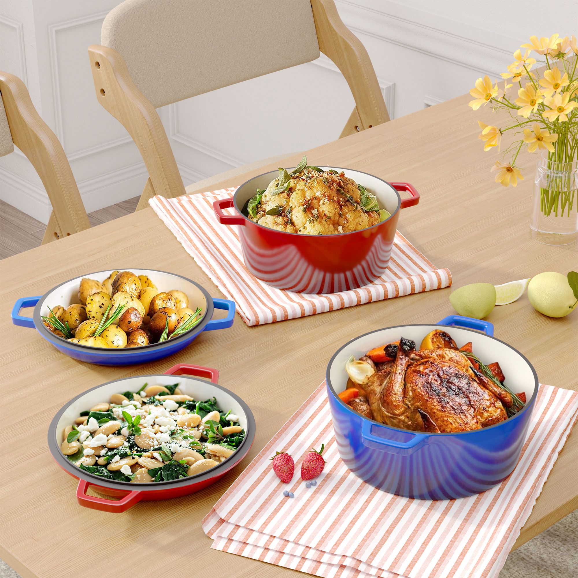 Enameled Cast Iron Dutch Oven with Serving Lid + ENCLOSED THERMAL CIRCLE Design